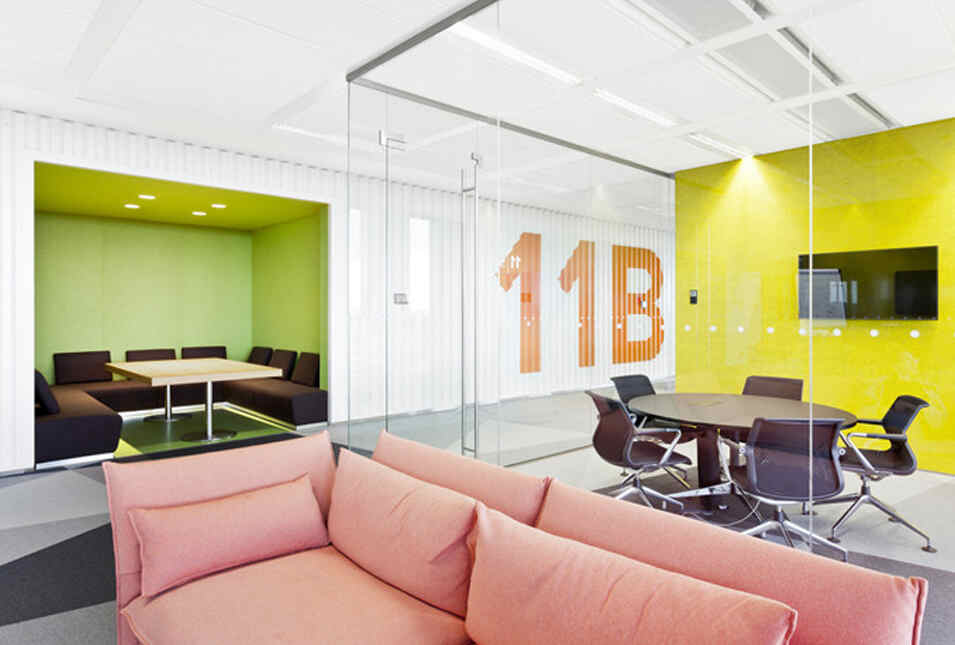 設計介紹:好玩的辦公室,體育館、娛樂室、游戲室、創造放松的空間,石頭型的多彩座椅,更顯趣味性,粉色的沙發是休息的法寶,并且設置的有圖書館,供人們休息室查閱,軟裝的座椅舒適,實用,還有用餐區,木質的座椅更加安全,健康,照片墻以綠色為背景顯得清晰明了,人性化,設計了體育館,員工們健身娛樂。