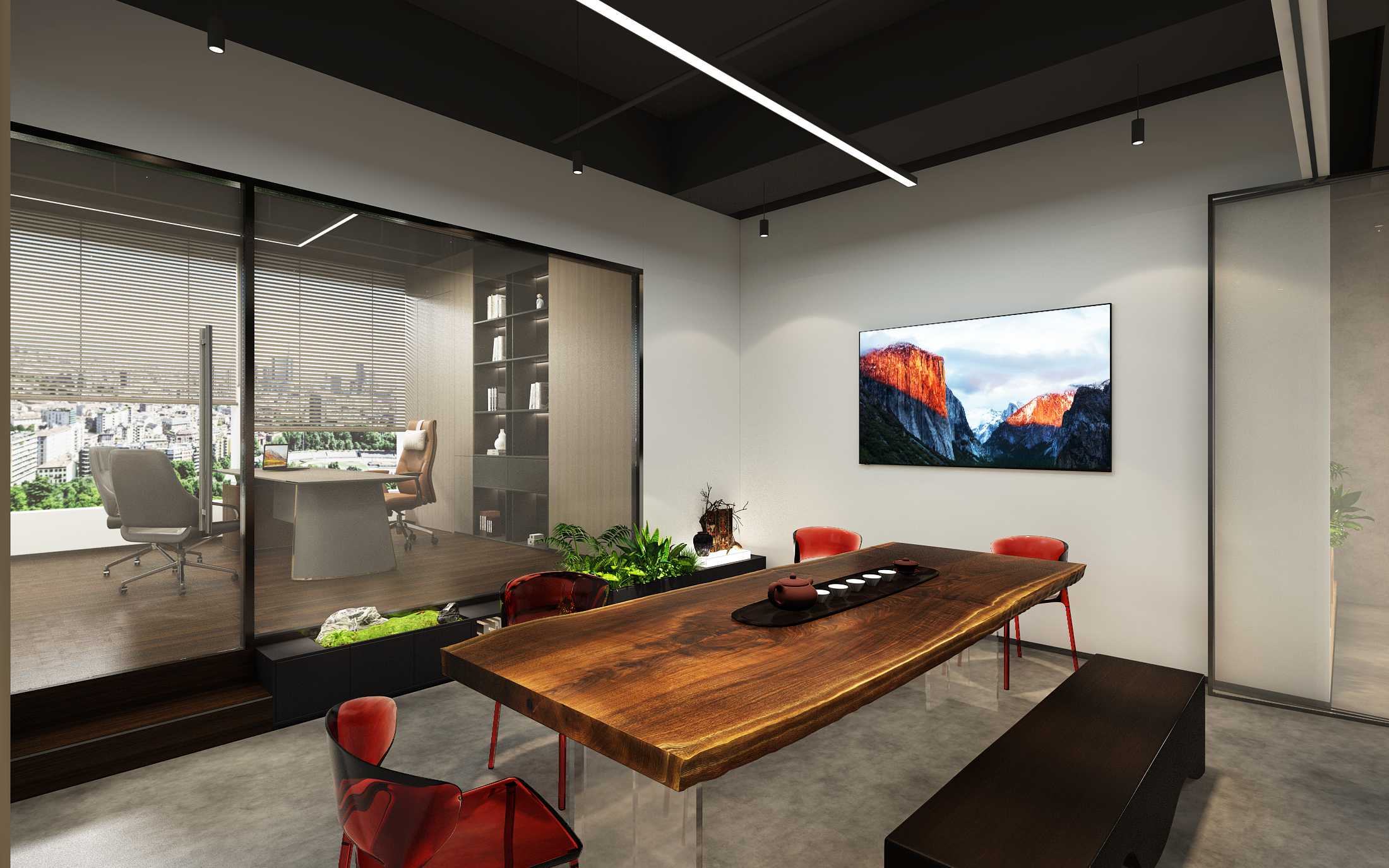 辦公室設計項目名稱:上海雅爾亨服飾工業風辦公室裝修效果圖案例