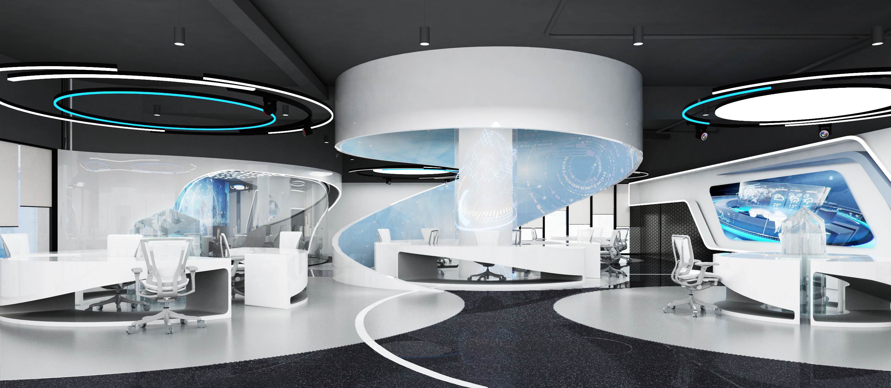 設(shè)計(jì)介紹:主要展示前臺(tái),走道區(qū),洽談區(qū),會(huì)議室,辦公室、休閑區(qū)、等各個(gè)區(qū)域?qū)嵨飯D,設(shè)計(jì)師們主要以灰色為主,搭配藍(lán)色沉著,白色留白,粉色黃色點(diǎn)綴緩解辦公視覺疲勞,設(shè)計(jì)前臺(tái)用圓形吊燈,四邊形環(huán)狀燈路為辦公區(qū)和會(huì)議室吊燈,表現(xiàn)出智能科技辦公的科技元素!